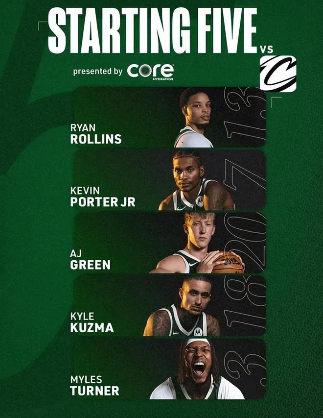 首发阵容方面,骑士队这边,斯特鲁斯(脚部受伤)、莫布利(伤病管理)、米切尔(腹股沟)、哈登(骨折)均无法出战,教练阿特金森排出的最新首发五人组为:韦德、泰森、梅里尔、施罗德、阿伦;雄鹿队这边,字母哥继续缺阵,首发阵容则为:AJ-格林、特纳、罗林斯、库兹马、小波特。