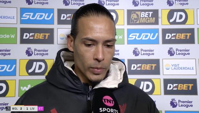 英超第29轮,利物浦客场1-2不敌狼队,赛后,利物浦队长范戴克接受了TNT体育的采访。