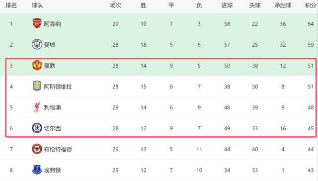 下一个比赛日,维拉将在主场迎战切尔西,而曼联则做客对阵纽卡斯尔,哪怕曼联在客场丢分,他们依然将位居前四。自从卡里克上任之后,曼联7轮比赛抢到19分,是同期表现最好的球队,没有之一。曼联只要保持这个状态,本赛季大概率能锁定一个前四名额,晋级下赛季欧冠。至于另一个前四席位,是维拉、利物浦还是切尔西,就不得而知了,因为这3队,看起来都不想要前四的样子,最终的结果如何,我们拭目以待!